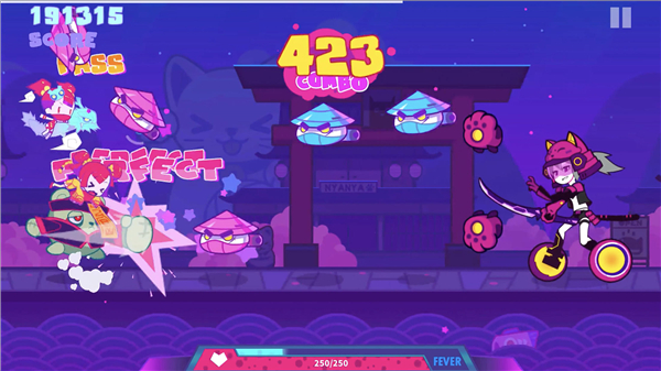 游戏的玩法也非常的简单,玩家需要跟随着音乐的节奏,通过按下屏幕上的箭头来完成各种跳跃、踩地和攻击等动作,不断地攻击敌人并避免被攻击。游戏击打敌人方式包括单键敲击(敌人)长按(乐谱)与连打(快速连续点击屏幕),只有不断击中敌人才能过关,相反,当玩家的角色被敌人撞击会扣除生命值,生命值清零则游戏结束。