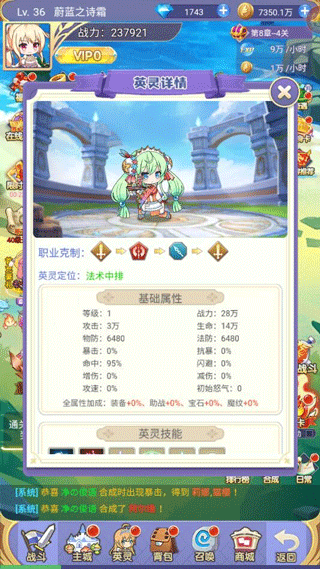 游戏画风精美,玩家在游戏里将体验到游戏精致的画面带来的享受,游戏的角色形象非常可爱绚丽,并且游戏拥有多职业英灵角色,玩家可以在游戏里解锁卡牌形象,带领她们组成强大的队伍来对抗魔族,阵容组成自由,玩家可以自由组合具有不同技能的角色,用独特的阵容来进行游戏的战斗。