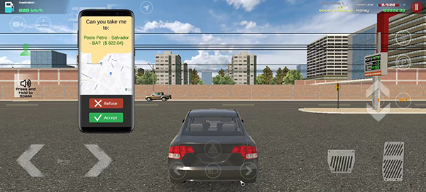 7、进入游戏后,会接到一个任务,点击【Accept】同意,左边的两个按钮是控制车辆的方向,右下方两个是刹车和油门,