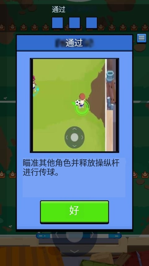 3、第三关需要你瞄准其它角色并释放操纵杆进行传球,传球三次以上即算闯关成功。