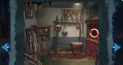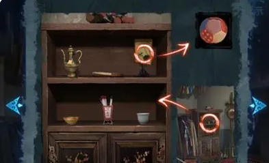24、根据神龛上的线索,如图摆放仓库陈列架上的戏曲道具,获得玩具球。