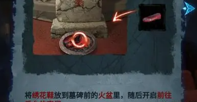 10、根据墓碑上面的线索,在图示位置旋转浮雕机关,打开获得绣花鞋。