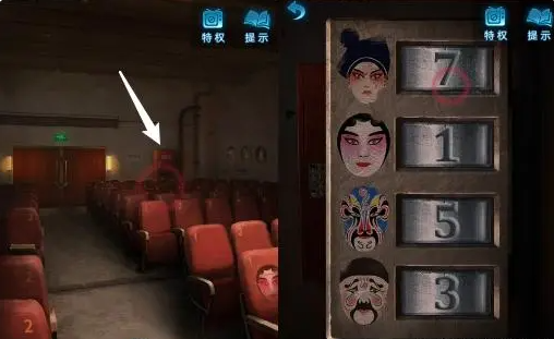15、根据字幕屏线索,将观众厅座位上的盒子上的滑块如图调整,取得化妆笔。