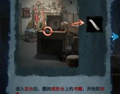 12、进入密室后台之后,点击梳妆台上的书记,拿到一张封条。