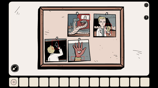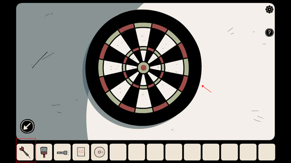 6、点击显微镜下方的柜子获得手电筒和带了化学方程式的镜片,在飞镖盘上获得飞镖。