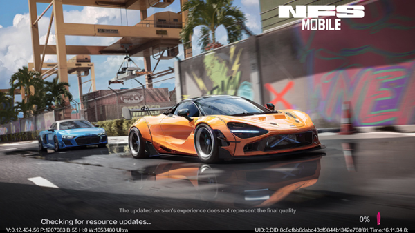 1、打开极品飞车手游最新版,游戏需加速器启动,第一次进入需下载部分资源文件;