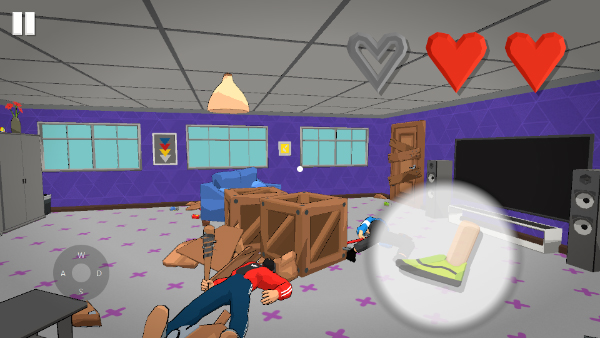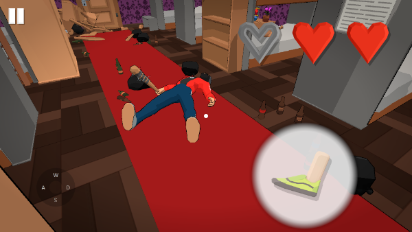 3、探寻下一个房间找到拿着棍棒的混混,用你愤怒的脚踹死他。