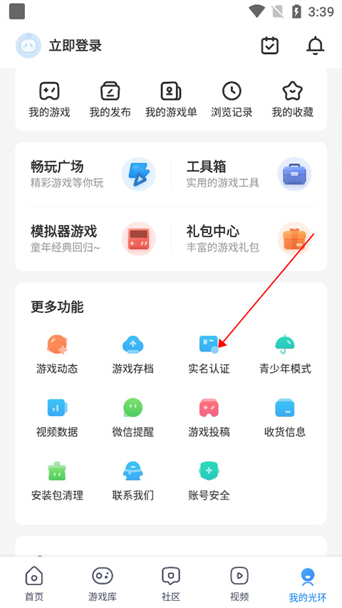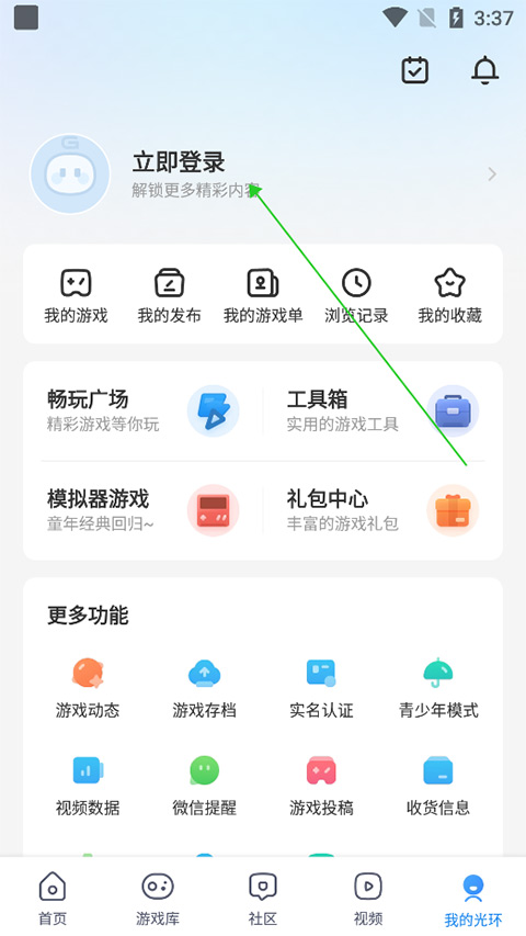 1、用户在本站免费下载应用后,安装在手机上打开应用就进入如下页面了,用户在此页面中点击底部的【我的光环】
