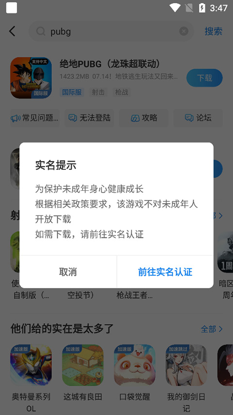 然后用户完成实名认证即可下载安装了