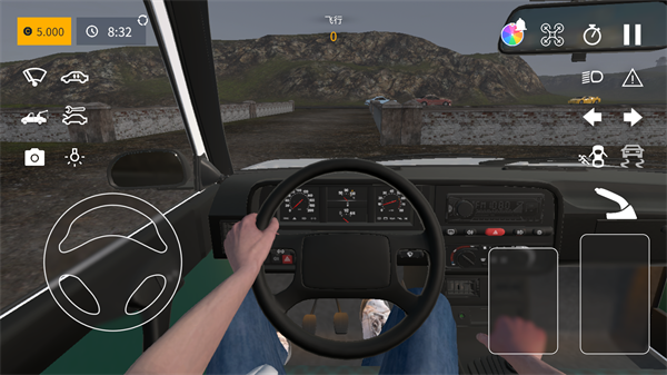 精准操控漂移、碰撞,内饰细节(仪表盘、雨刮器)与真实音效(引擎轰鸣)结合,第一视角身临其境。