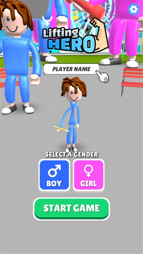 1、打开肌肉英雄游戏,进入游戏主界面,选择【PLAYER NAME】可以输入游戏昵称,同时选择好角色性别,