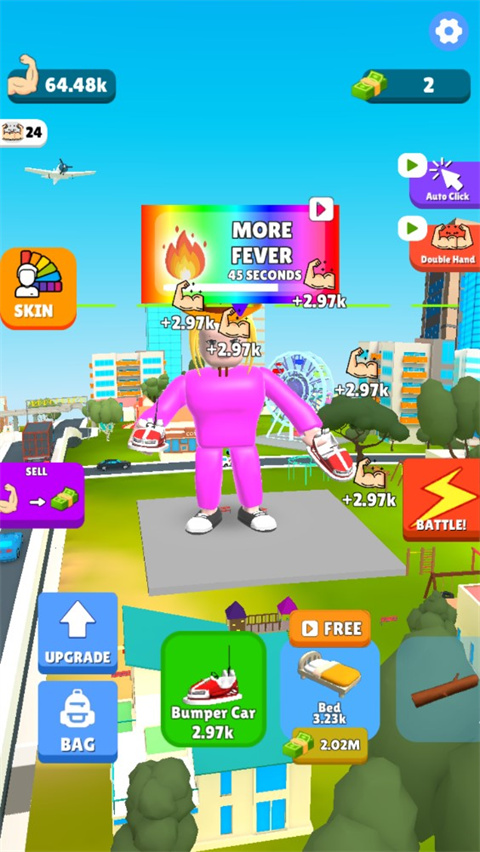 肌肉英雄还提供了丰富的道具系统,包括哑铃、飞机、火箭、飞碟甚至陨石等,不同的道具有不同的加成效果,这些道具可以帮助你在比赛中取得优势,让你的实力得到极大的提升。当你的体格高于敌人时,你可以充分利用这个优势,通过对敌人进行猛烈的撞击,导致他们的肌肉流失,让他们一撞回到虚弱时,这样一来,你就可以轻松地战胜对手。无论你是想挑战自己的极限还是寻找一种轻松愉快的游戏方式,肌肉英雄都值得一试。