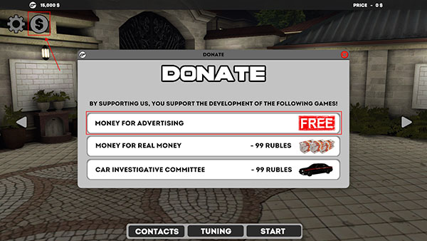 2、如果想要驾驶的车辆所需金币玩家不够,可以点击左上角“金币”图标,点击第一个“free”,免费获得5000金币;