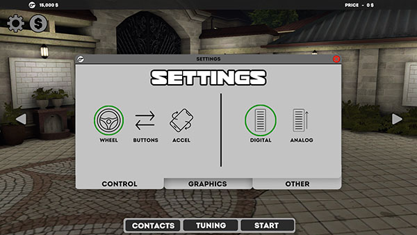 3、点击右上角“设置”图标,可以设置驾驶方式,方向盘或者手机晃动控制;