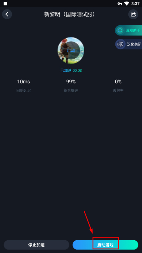 2、加速完成后,点击下方启动游戏,
