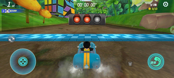 一进入游戏界面,一股亲切感扑面而来。游戏主界面的背景是漫画和动画中小伙伴们平时玩耍的空地,后面还有人在打棒球。重力感应可调整视角,呈现出一个更完整的哆啦A梦世界。游戏的主线剧情也是随着哆啦A梦、大雄、胖虎等人的赛车冒险展开的,玩家可以带入到漫画中的角色展开赛道追逐,在赛道上甚至还会出现缩小灯等经典道具。