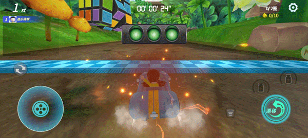 当比赛开始,倒计时的灯开始亮起,找准时机长按漂移键即可开始喷射起步的蓄力。当倒计时结束后,就会自动触发喷射起步哦~