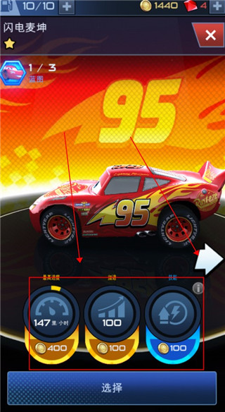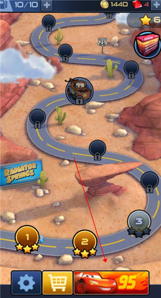 1、进入赛车总动员极速闪电中文版游戏后,点击关卡就可以进入关卡,后面的关卡需要通过前一个关卡才能解锁
