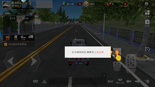 1、游戏内真实模拟驾车,玩家需要先点击安全带标记系好安全带。