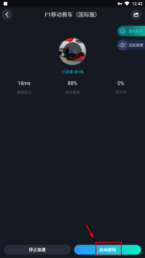 1、在本站下载F1移动赛车最新版,游戏需加速器启动,打开CC加速器,找到该游戏,然后点击右侧加速;