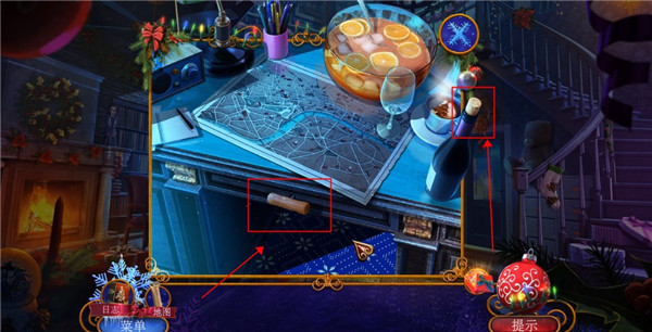 1、打开耶鲁节传说谁陷害了圣诞老人游戏,进入游戏主界面,我们对图中的桌子进行检查,