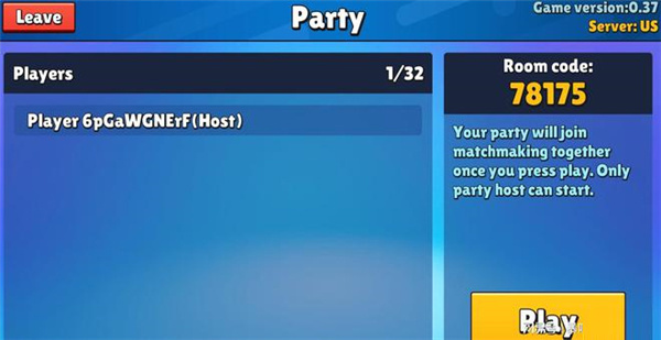 4、选择【PARTY】进入多人模式,玩家可以自己创建房间也可以输入好友的房间代码一起游戏,