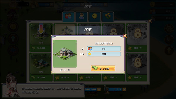 3、进入游戏后,我们需要建造民宅,点击建筑;