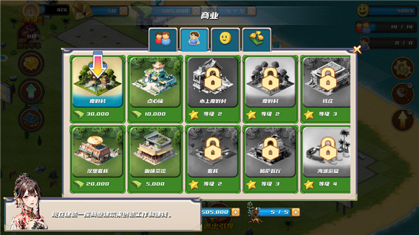 9、然后再次点击建筑,见着一座商业建筑来工作赚钱;