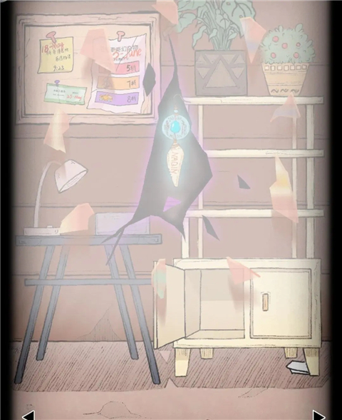 用撬棍点击壁炉上破损砖块,得到残缺传单,放入原位置。
