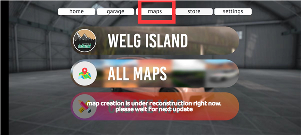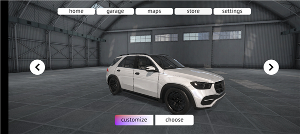 1、进入游戏首页,点击garage,玩家可以点击左右键,选择自己想要的车辆;