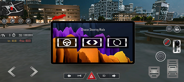 5、发动车辆之后,左下角的按钮可以用于控制车辆的方向,右边的分别是车辆的油门刹车和档位;