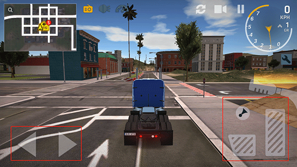 4、在游戏中玩家需要通过左右按键操控卡车的方向,右边为倒车、前进、喇叭和手刹