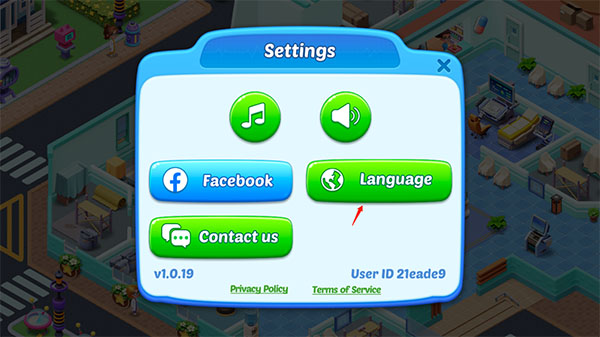 1、进入疯狂的诊所,点击上方设置