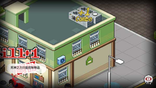4、下面就是发现并“点击”场景中的“危险物件”。比如楼顶的花盆,当人出现在花盆掉落的区域,就可以再次点击花盆将人砸死。