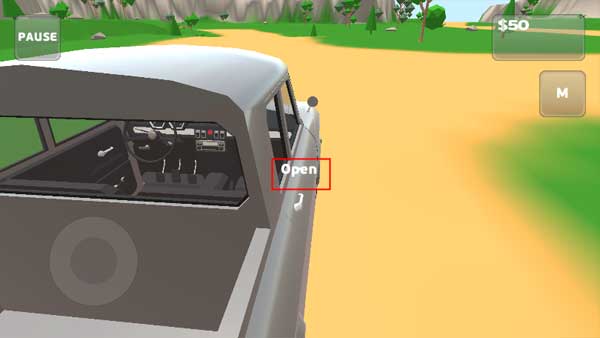 8、那么如何开车门或其他的大门呢,就是将白色的点对准门,这时弹出open字样,点击它即可打开。