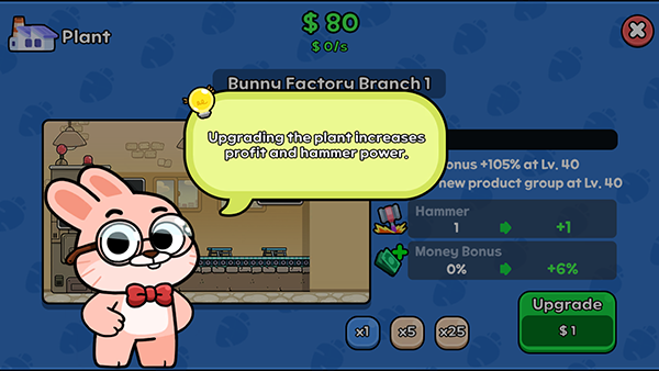 兔子村闲置大亨是以工厂生产为主题的一款模拟经营养成类游戏,在游戏中,玩家将扮演一个工厂的主人,负责经营和管理自己的工厂,为了实现这个目标,你需要招募各种不同类型的兔子员工和保安来帮助你进行日常的运营工作。