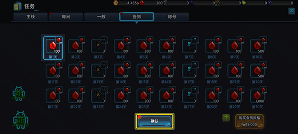 6、在右上角菜单-任务页面中可以领取每日签到获得奖励。
