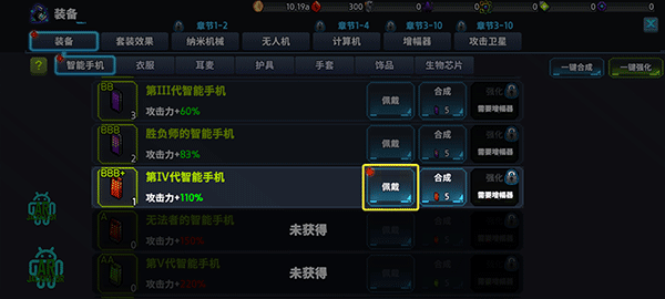 8、在装备页中佩戴好智能手机加强你的攻击力。