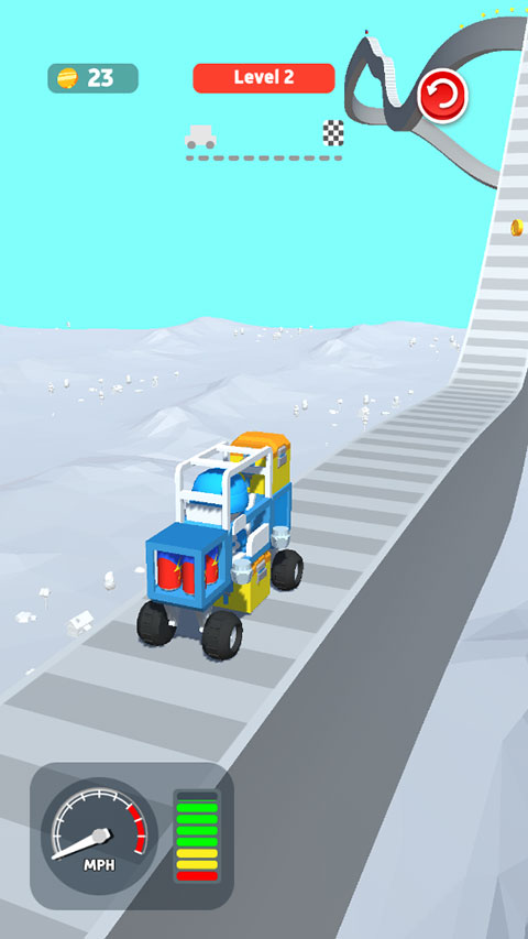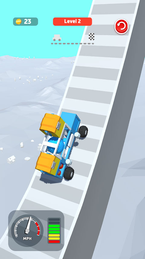 4、搭配出更棒的小货车,闯关注意避免危险和障碍,收集金币和各种道具,征服各种路段。
