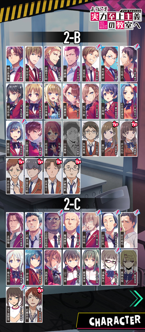 欢迎来到实力至上主义的教室官方版是一款二次元漫改合并消除休闲游戏,全称:欢迎来到实力至上主义的教室~合并拼图特别考试,该游戏由热门动漫《欢迎来到实力至上主义的教室》改编创作而来,还原了众多原著动漫角色,如绫小路清隆、堀北铃音、栉田桔梗、轻井泽惠等,更有豪华声优阵容参与配音,一比一还原原著动漫剧情,只为给玩家带来更加身临其境的游戏体验。