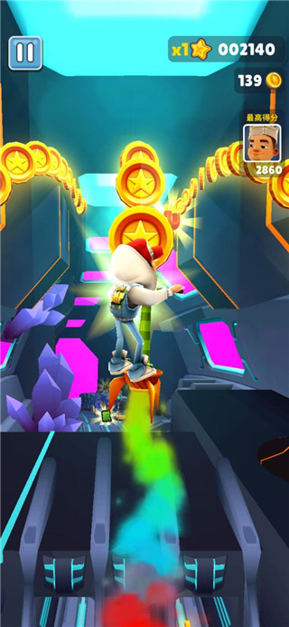 4、在行驶的路途中双击可以拥有滑板,就算撞到火车的时候也不会有什么事情;