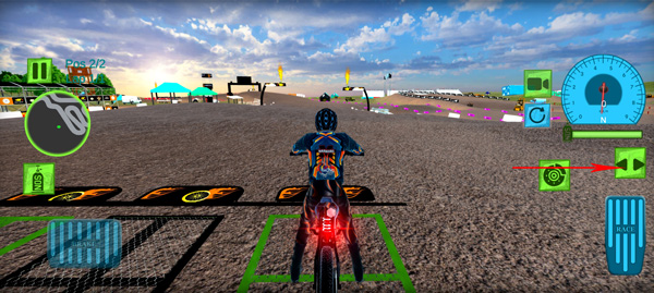 1、打开越野摩托模拟器最新版本,左下方的两个按键分别是控制摩托的左右方向;