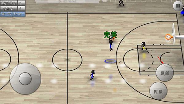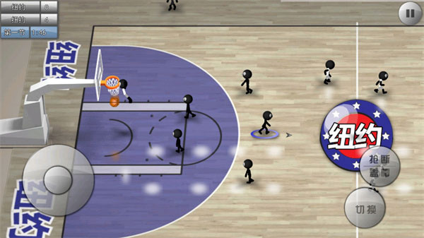 3、赛事中根据虚似遥杆控制火柴人灵便跑位,2个功能键的功效依据防御转换可进行传接球、投球、转换、断球、篮板,让简易的实际操作就能控制多种多样的动作,游戏玩家能够轻轻松松的感受比赛快乐;