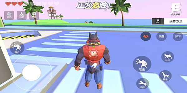 你将在游戏中控制一只肌肉猛狗自由冒险,你将成为城市的英雄(恶霸),在不断维护正义的同时提高你的技能,在打败敌人后,你可以获得许多奖励来实现你的进化并交换更多武器。