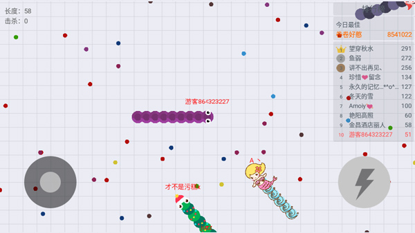 急速超车拦截蛇头、急停甩头抢道、180度华丽变向、画个圈圈诅咒你……这些都是战斗技巧!谁说贪吃蛇大作战只靠手速?策略也很重要,当然如果你恰好单身又练过手速——完美!