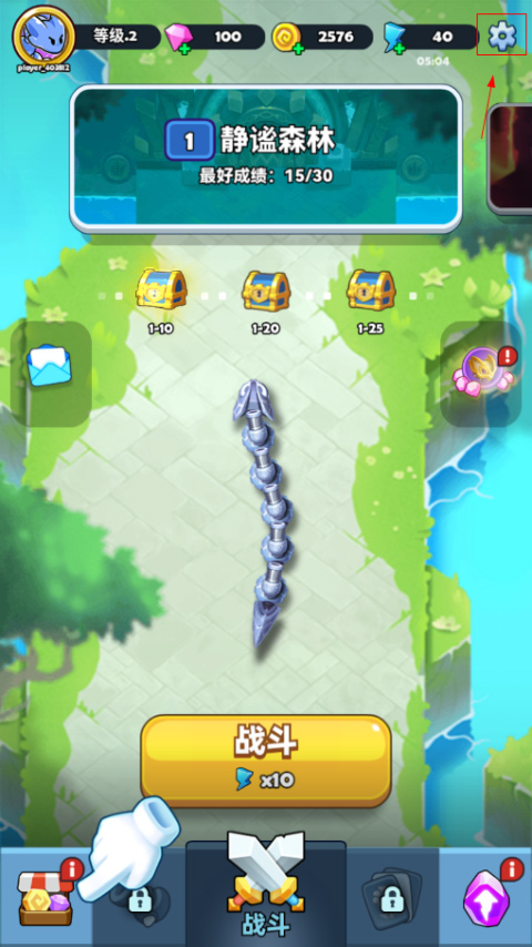 1、打开蛇蛇贪吃游戏,点击右上角设置按钮;