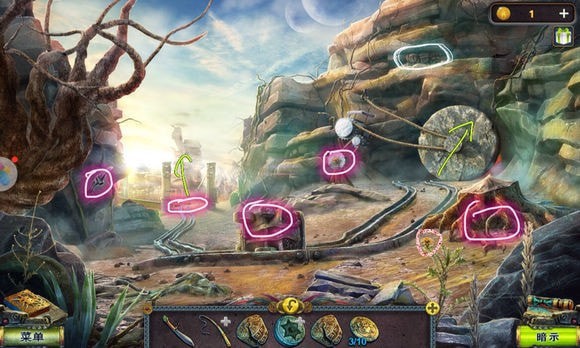 3、石圆盘——放石滚筒——完成游戏,进入萨满神庙
