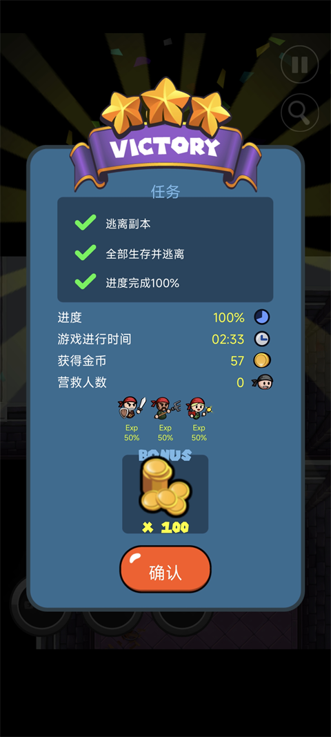 为了带给您超爽的感受,我们准备了100多个关卡。并且,通关的同时还可以完成任务,使勇者团变得更加强大。每个月还会有新的关卡等您玩,放下心尽情享受游戏吧。我们会为了带给您更多的乐趣,持续进行努力!为了给您带来更多的乐趣,我们会不断地努力奋斗的!