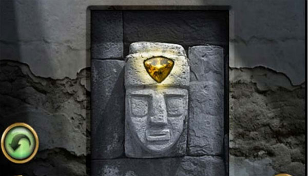19、来到场景29,用锤子敲碎瀑布,进入场景34,依照记录的图形解开墙壁上的谜题,打开场景37的石门。