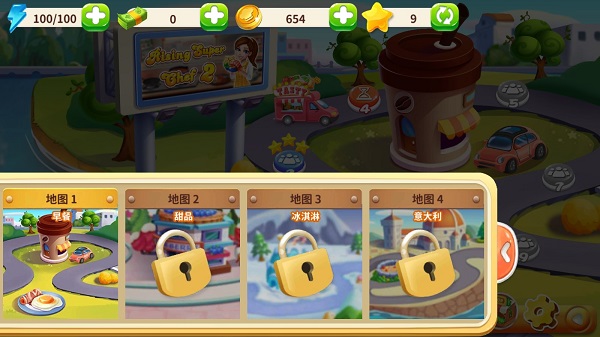 1、进入游戏后,开始第一站的烹饪管理,在这里每一关都有不同的任务目标!